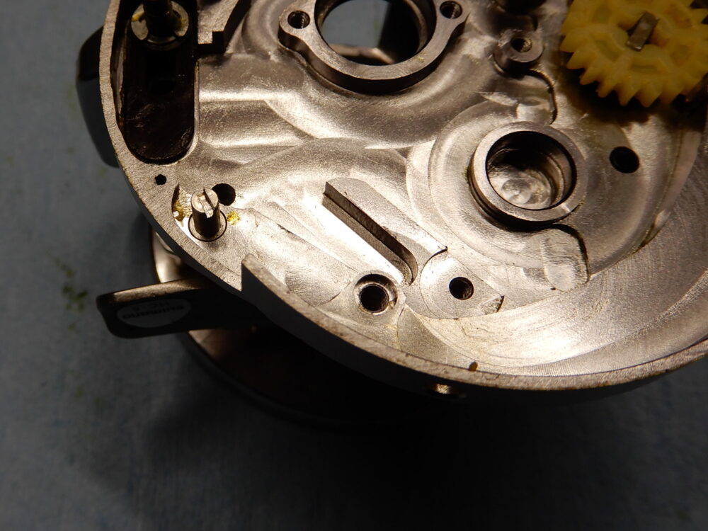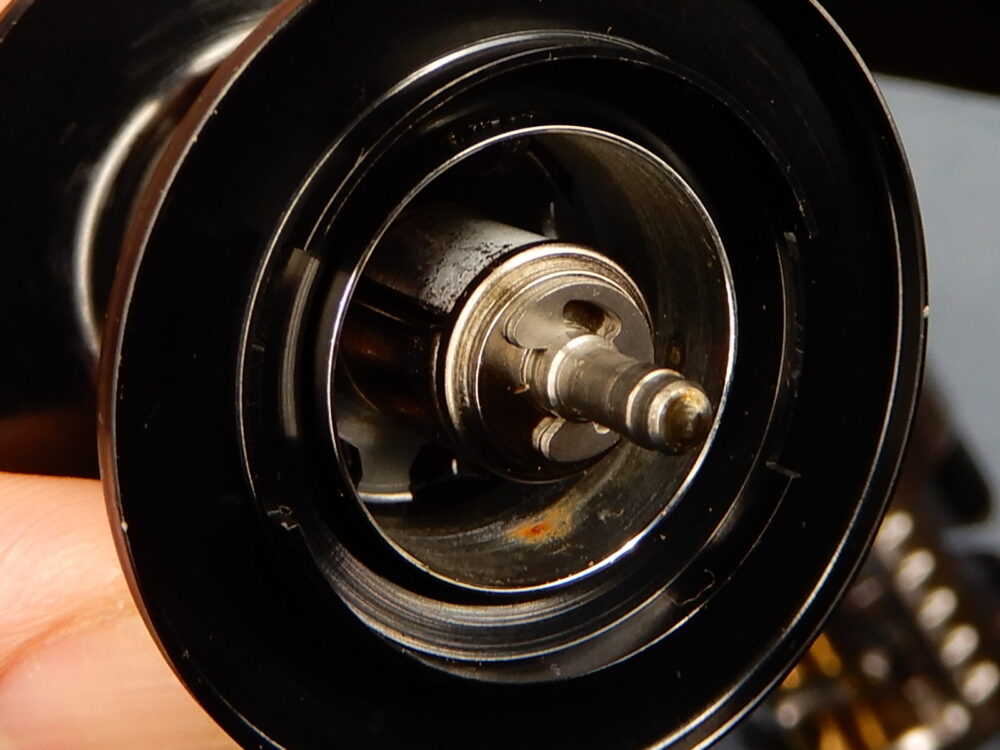 (左画像)スプール内にサビがあります。