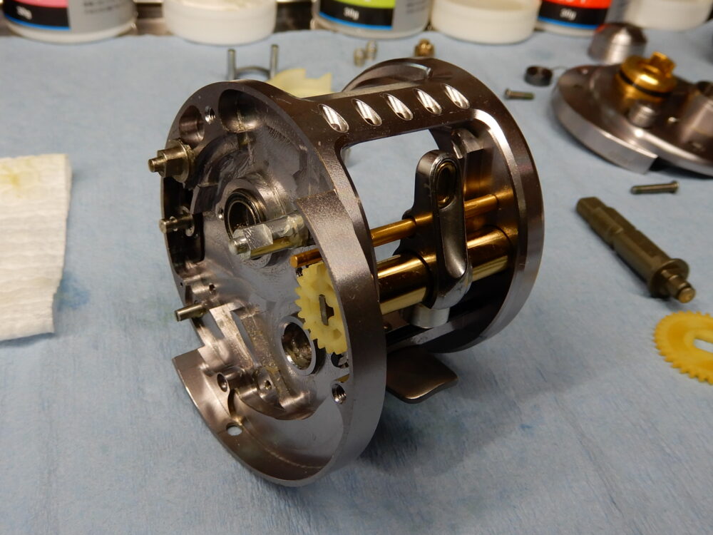グリスがボッテリ乗ってます。ここのグリスは「電動リールコネクター用」とかでいいんでしょうか?今回は軽く掃除するだけにしてこのまま戻します。