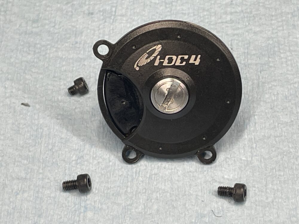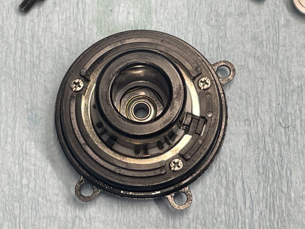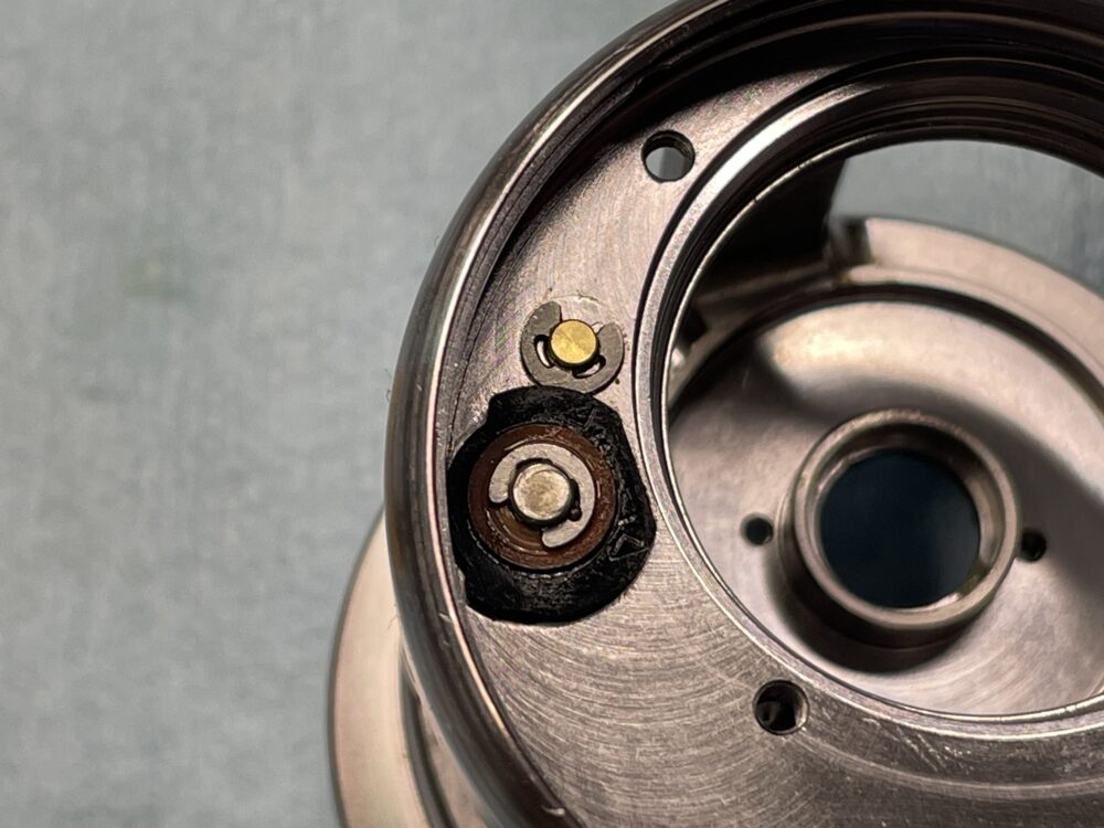 DCユニット裏側と、そこに入るスプール側の磁石です。