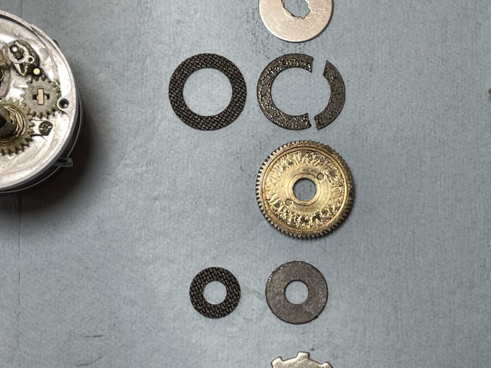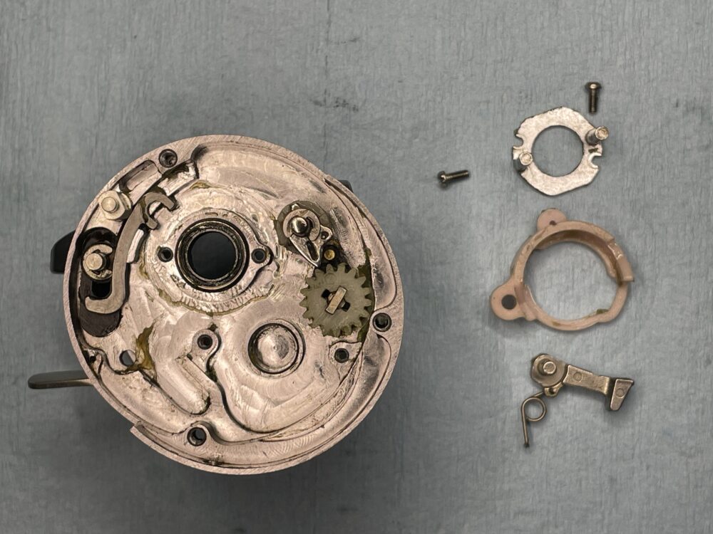 これでドラグ音出し機構部は分解完了です。