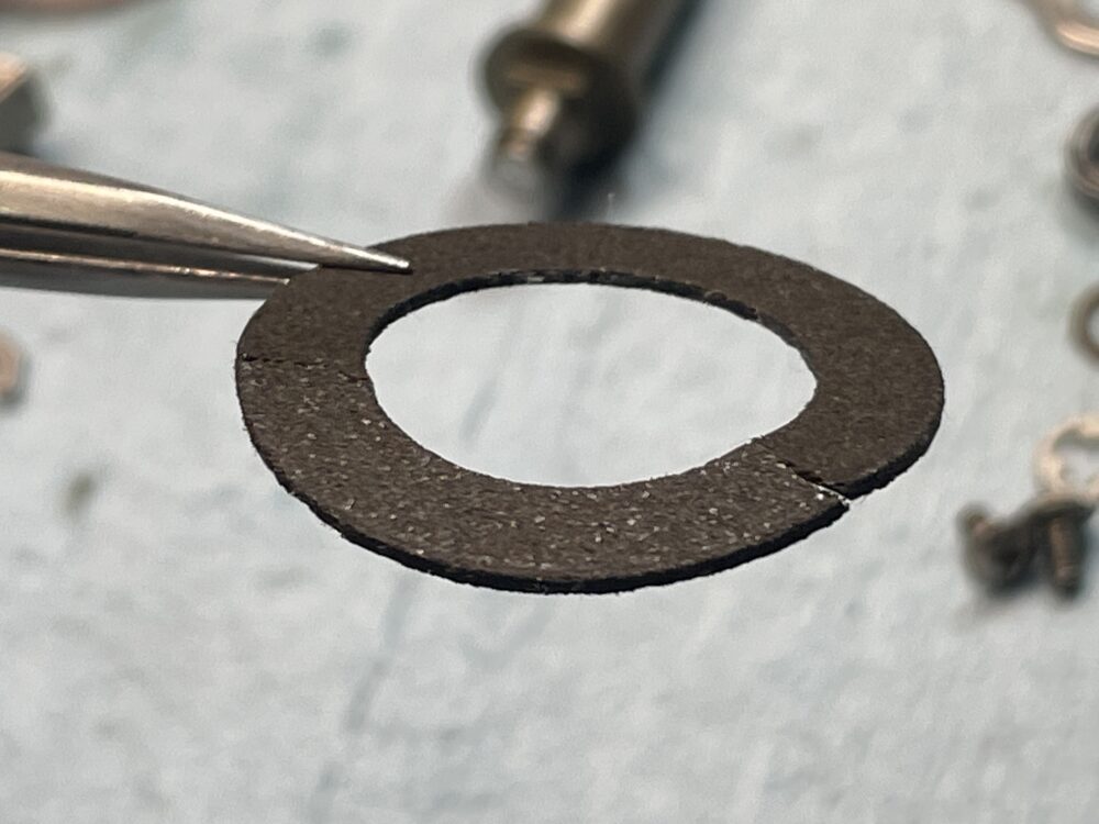 「Eリング」と「ドラグ音出シピン」取り外し。