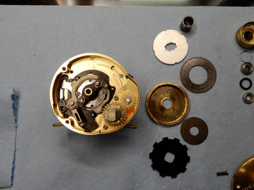 ドライブギア、ドラグ部、ピニオンギア取り外し。
