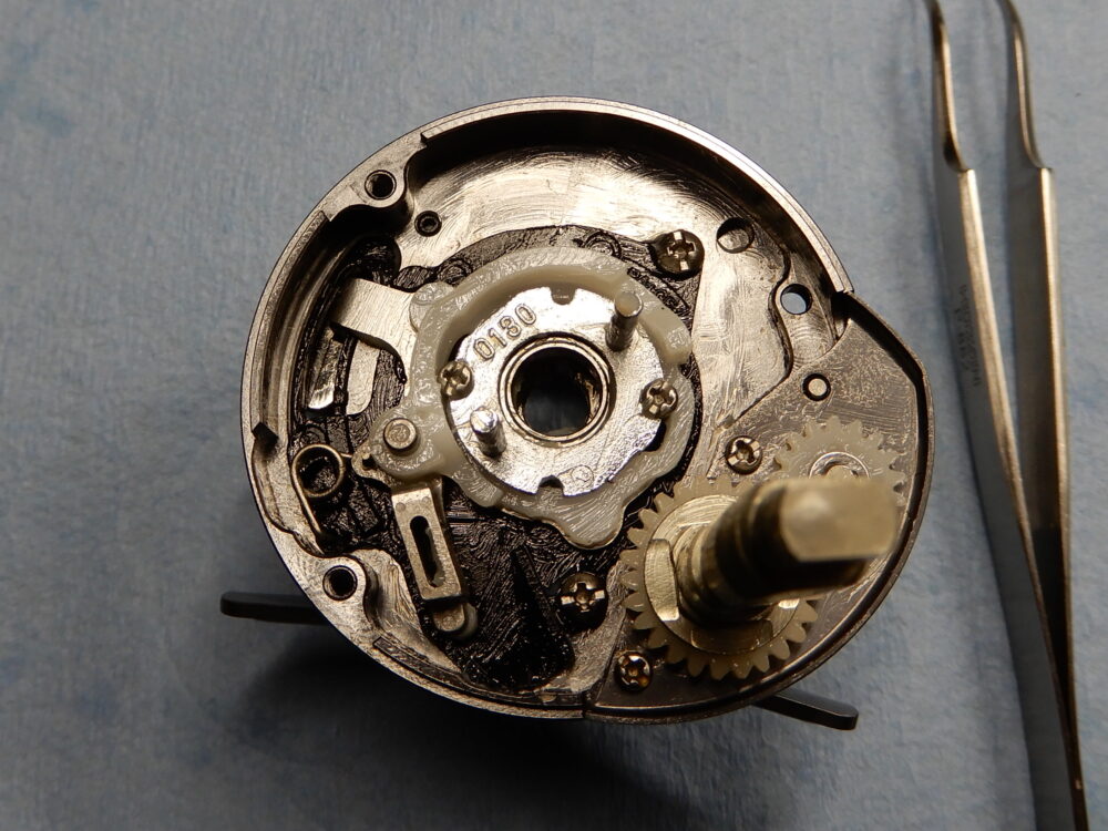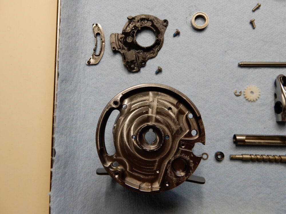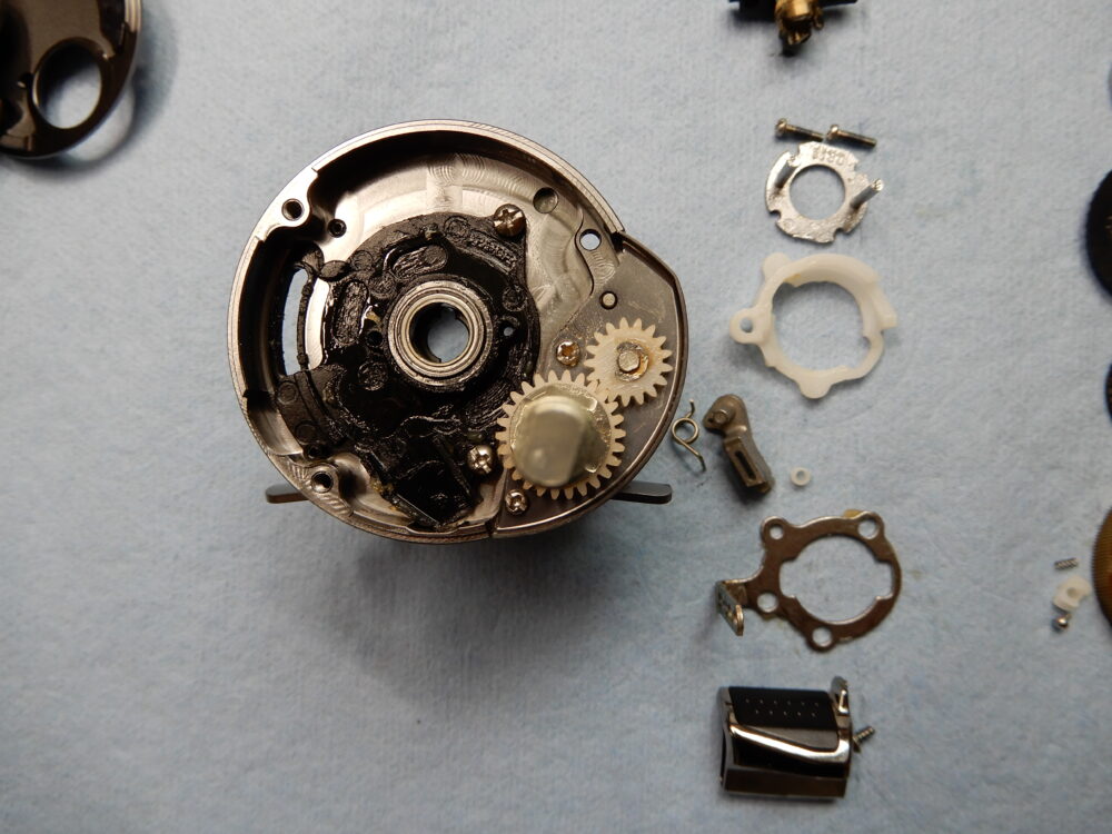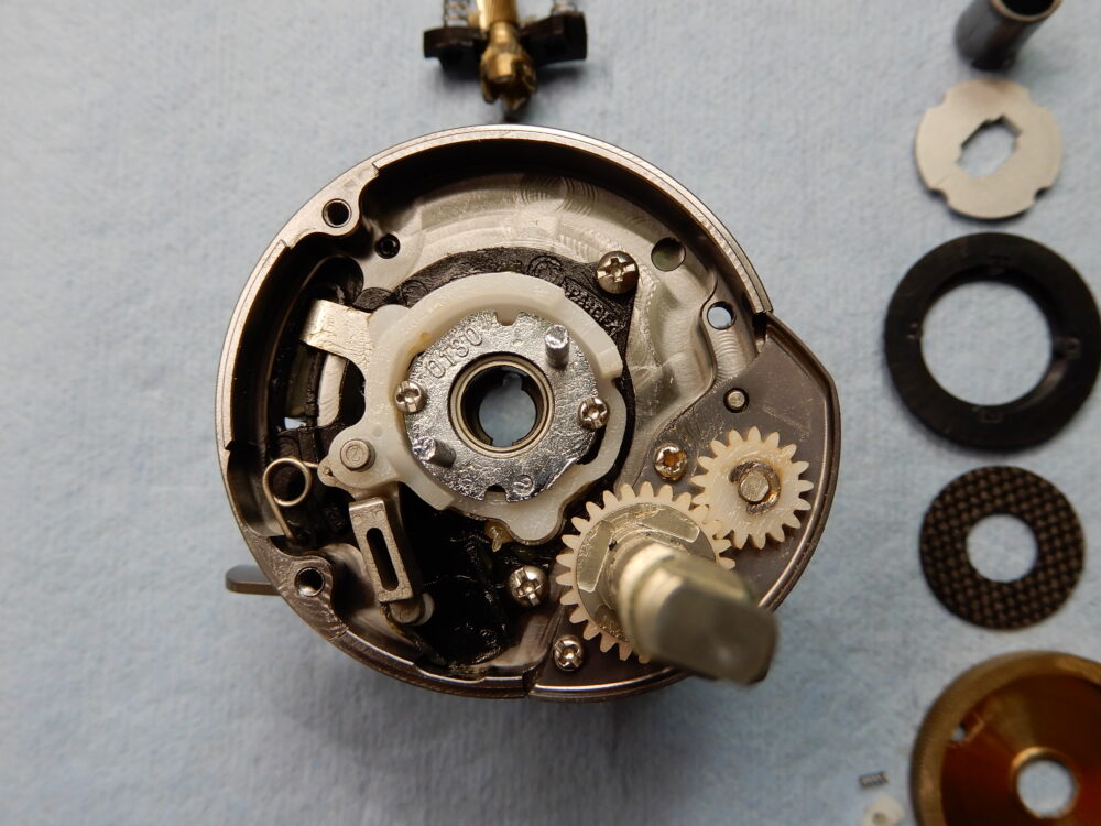 ピニオンギア、クラッチ関係の部品を取り外しました。