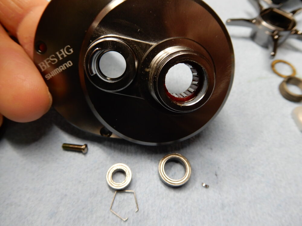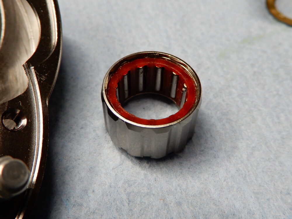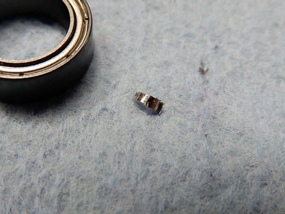 こちら、ローラークラッチ外側のベアリングを取り外したところ、ベアリングの下から金属片が出てきました。