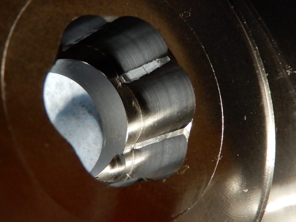 ローラークラッチを取り外してみたところ、ハウジング内が偏って削れています。ローラークラッチを嵌め込む時に少し斜めになったか何かしたんでしょうか。ローラークラッチ自体は異常ありません。