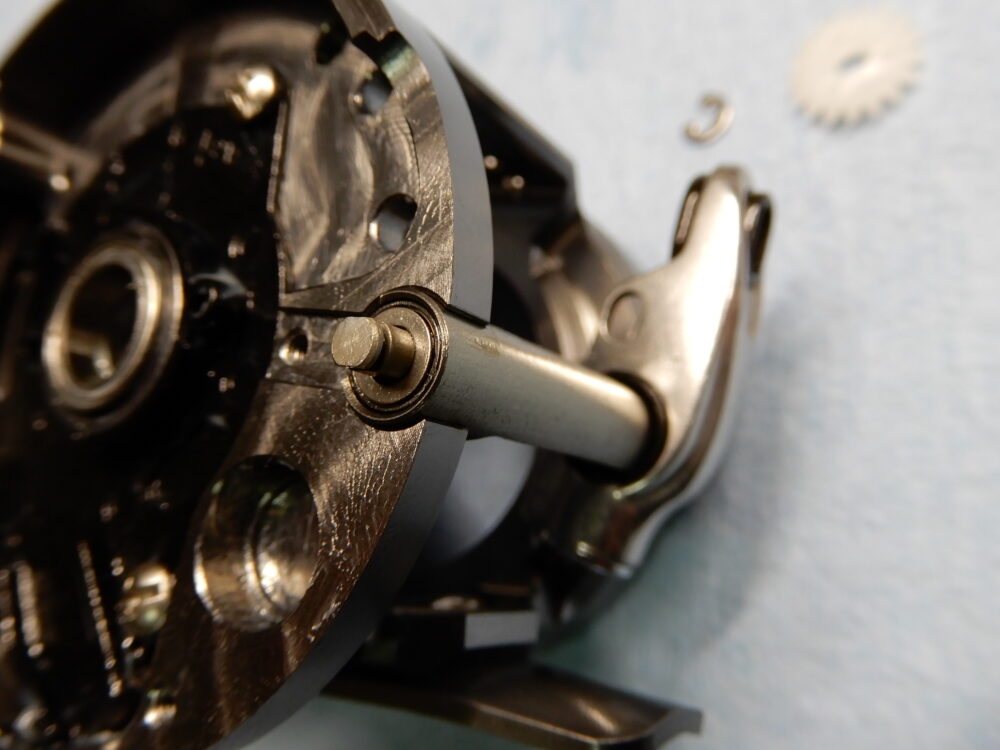 先に「ウォームシャフト」「レベルワインド組」「ウォームシャフトピン」を組んでから、フレームにセットしていきます。