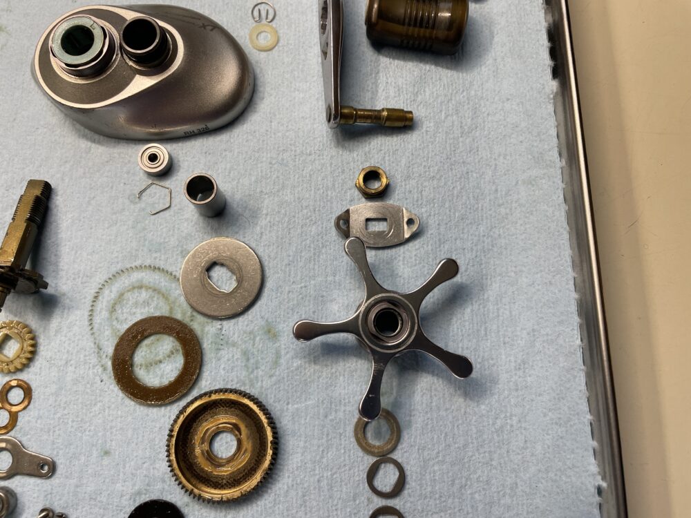「ハンドル受ケ座金」が無くなっていますが、実釣に影響は無いかと思いますのでこれで良しとします。