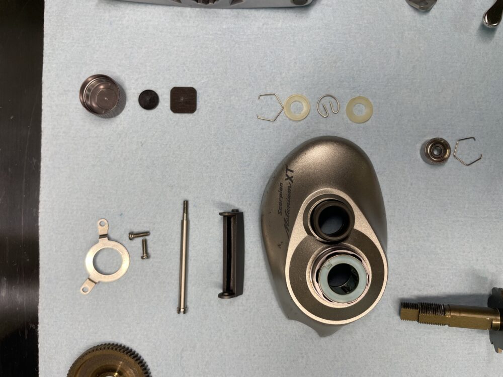 赤メタの時に「外側にビスを見せない」という美へのこだわりを感じましたが、今回の銀メタでは更にハンドル固定ナットとリテーナーまでハンドルの下に隠してしまうという徹底ぶりです!
