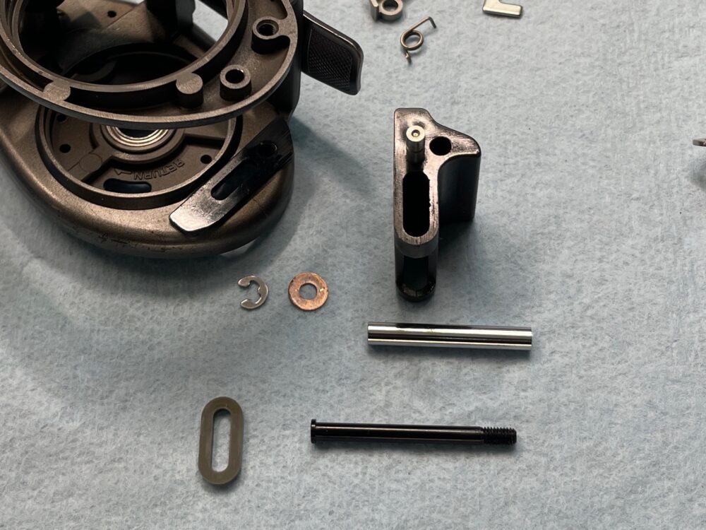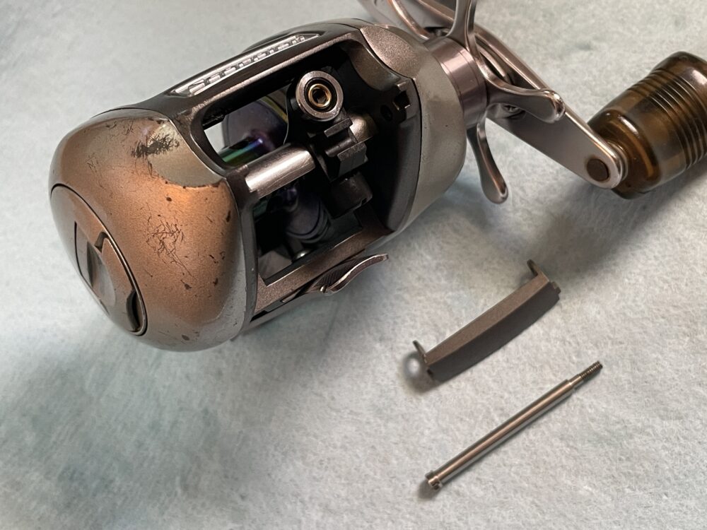 こちら、2本のビスと、レベルワインドガイドを取り外して、