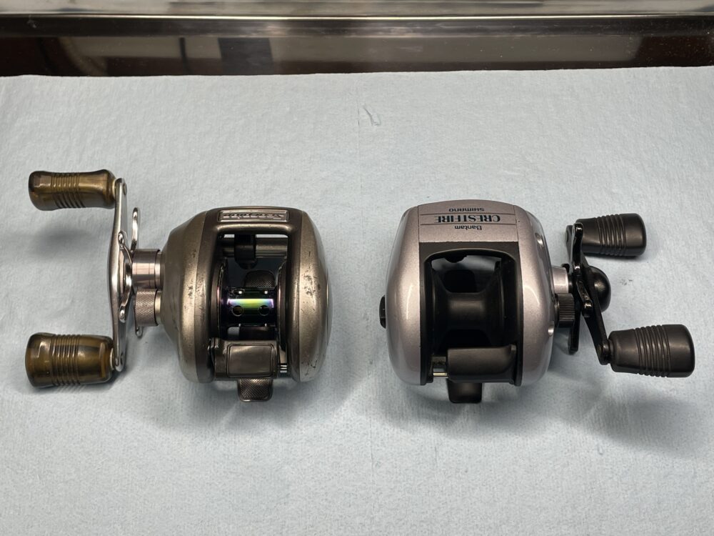 赤メタと銀メタ、ピニオンギアとスプールの違いです。
