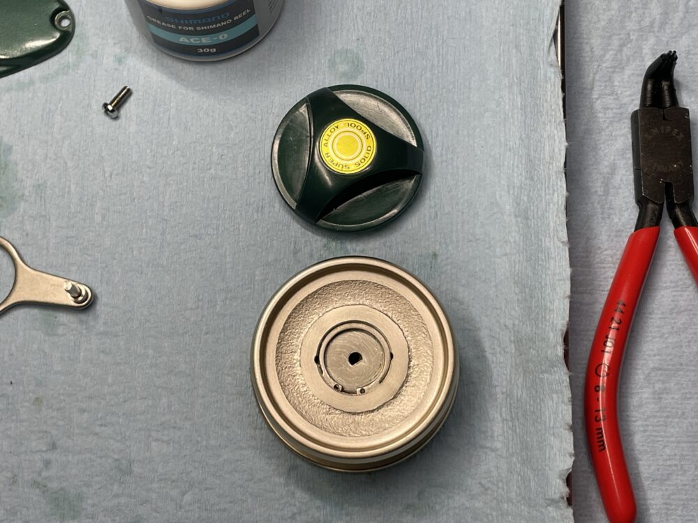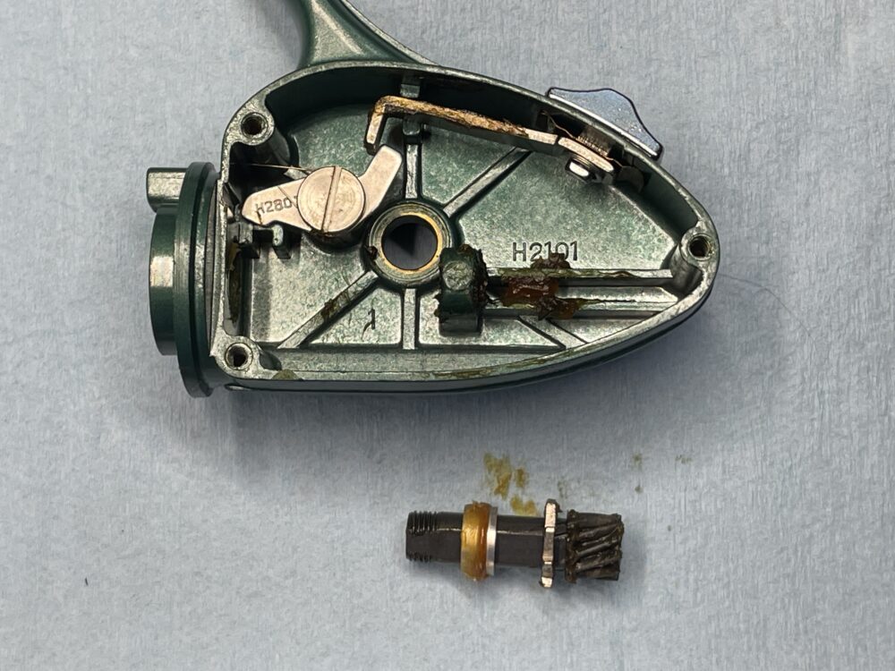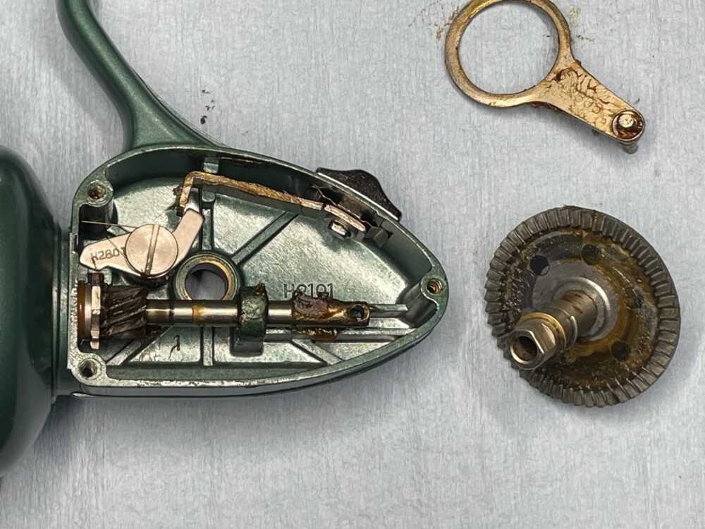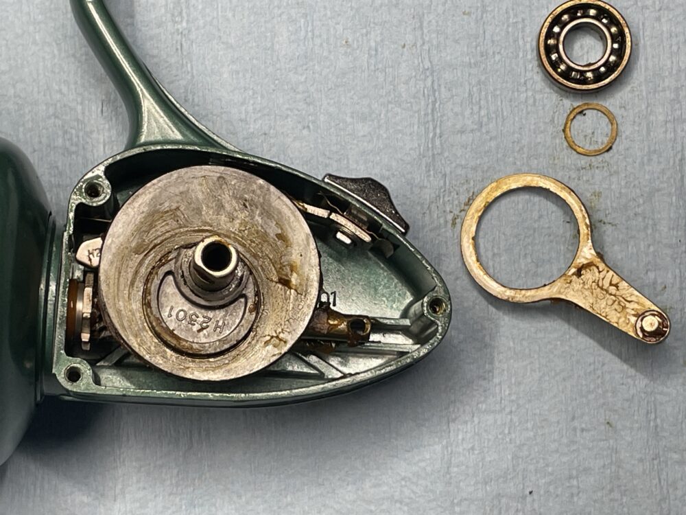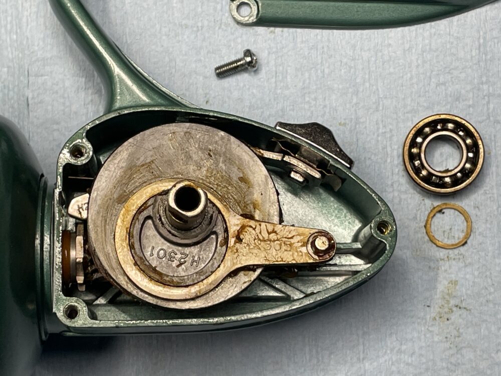 メインギア、リールシャフト(という部品名です)を取り外します。