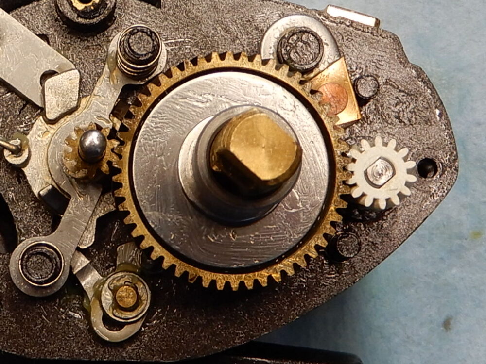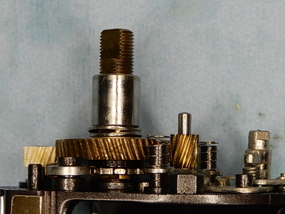 (右画像)ピニオンギア、ストッパーギア、アンチリバースドック、取り外し。